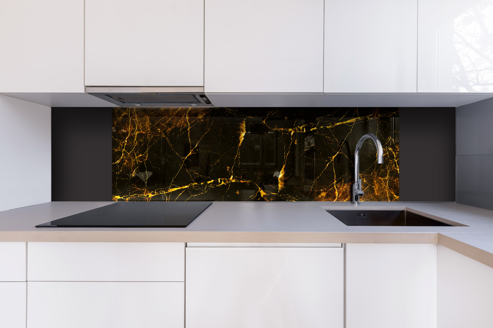 Plexiglas pentru peretele de bucătărie Marmură Neagră și Aurie – 180 x 60 cm