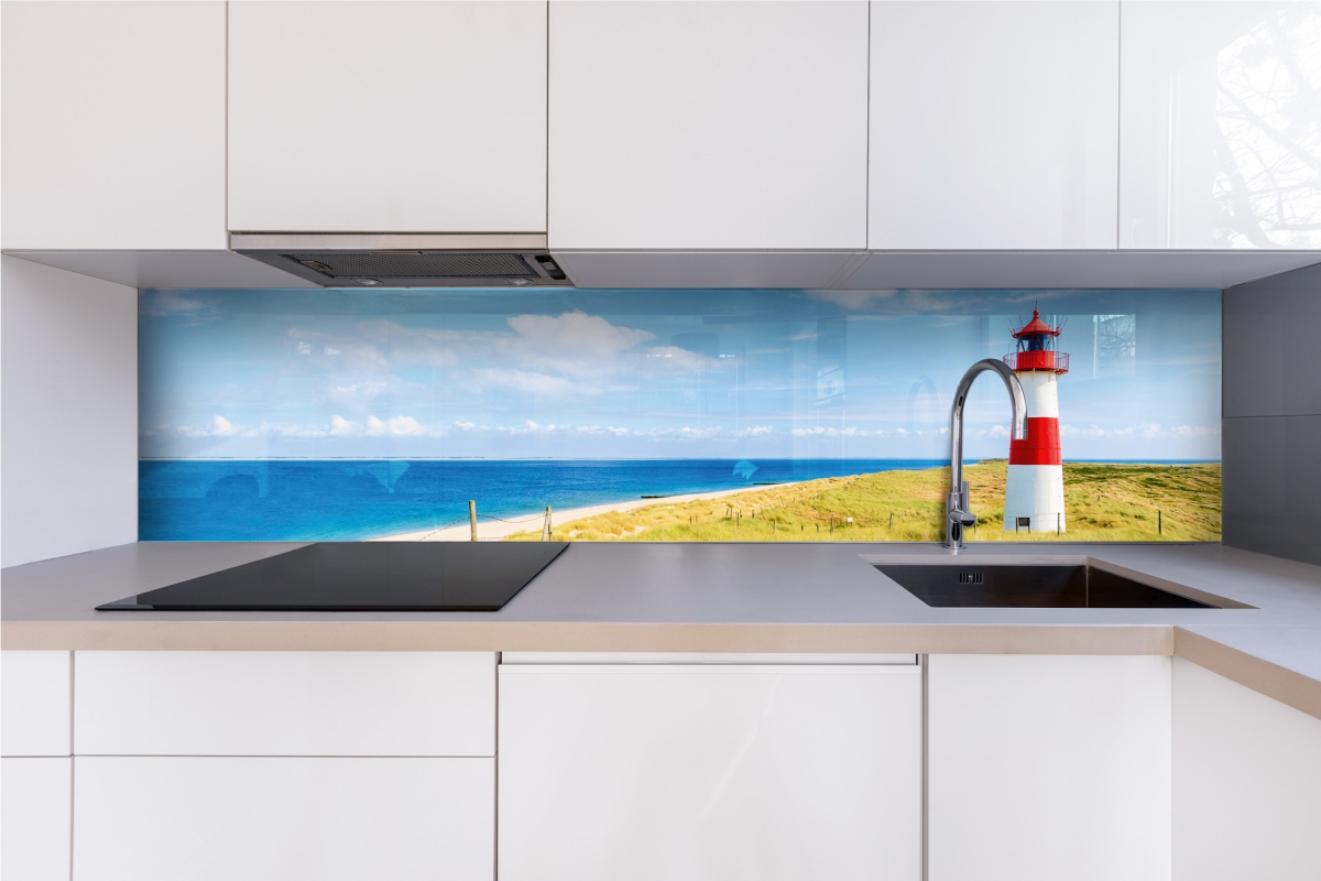 Plexiglas pentru peretele de bucătărie Far pe plajă – 240 x 60 cm