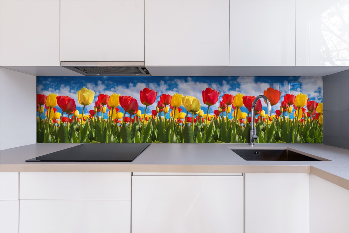 Plexiglas pentru peretele de bucătărie Câmp de lalele – 240 x 60 cm
