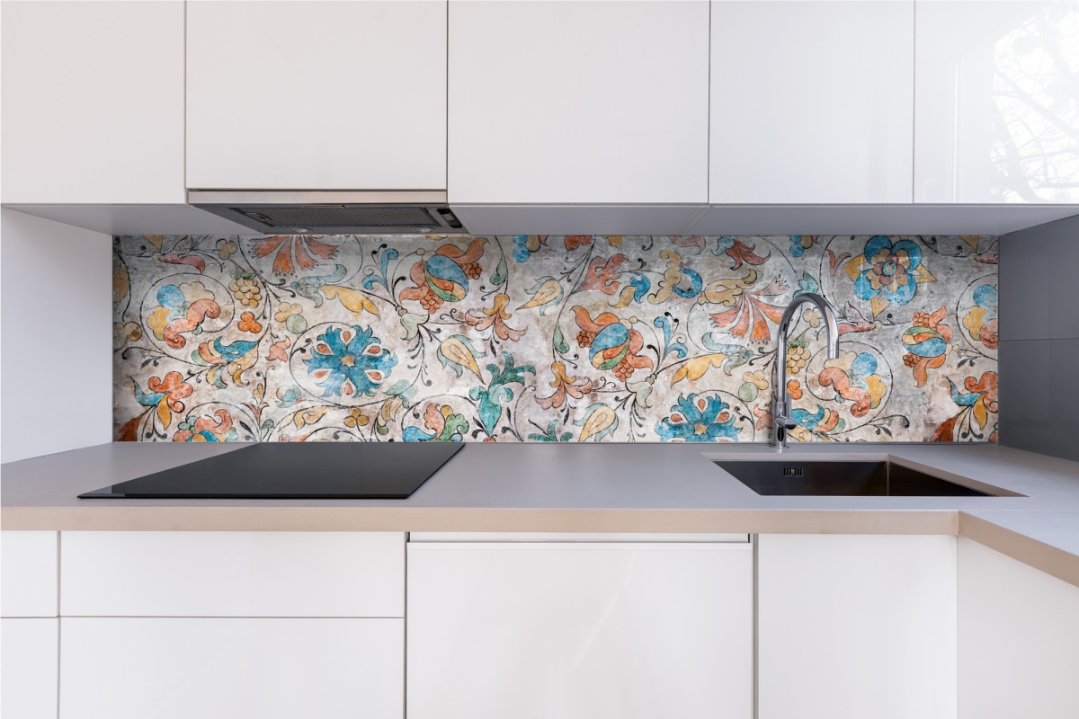 Plexiglas pentru peretele de bucătărie Fresca florală italiană – 240 x 60 cm