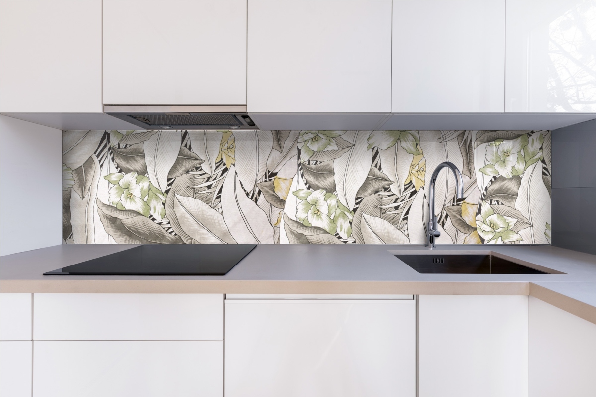 Plexiglas pentru peretele de bucătărie Model floral de design – 240 x 60 cm