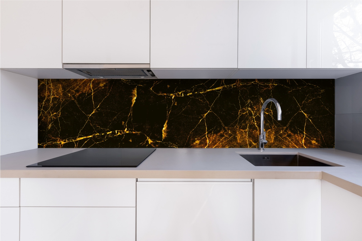 Plexiglas pentru peretele de bucătărie Marmură Neagră și Aurie – 240 x 60 cm