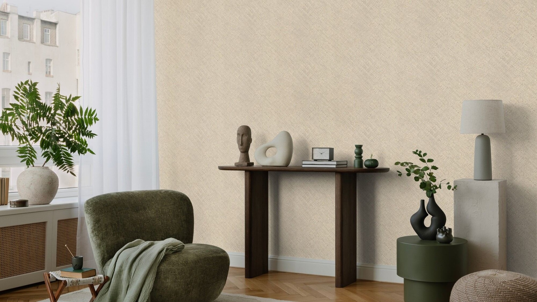 Tapetul este fabricat din material vlies, adică din fibre celulozice, care garantează rezistență, lavabilitate, stabilitate a culorii și, mai ales, o durată lungă de viață. Tapetele de perete pot transforma cu ușurință aspectul încăperii și îi pot oferi o atmosferă complet nouă, în funcție de modelul ales. Avantajul tapetului vlies constă în aplicarea și îndepărtarea ușoară, precum și în permeabilitatea excelentă la aer.