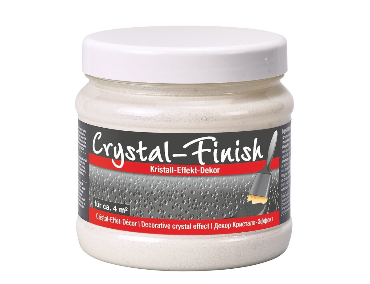 Crystal-Finish este un vopsea efect de înaltă calitate pe bază de acrilat, care conține particule reale de sticlă. Potrivit pentru vopsirea pereților și tavanelor, tapetelor, acoperirilor colorate, zidăriei, tencuielilor, polistirenului și aproape tuturor celorlalte suprafețe din interior.